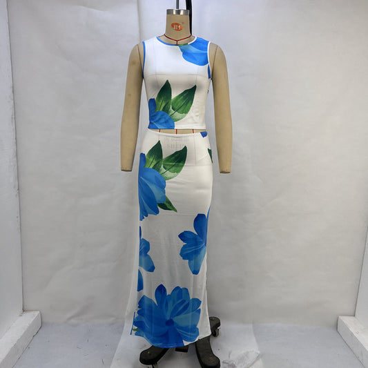 Vacation Style Printed Long Dress With Big Swing