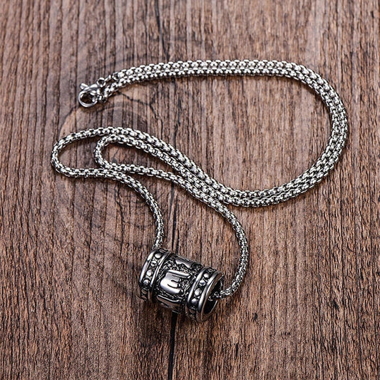 Tibetan Steel Prayer Wheel Necklace
