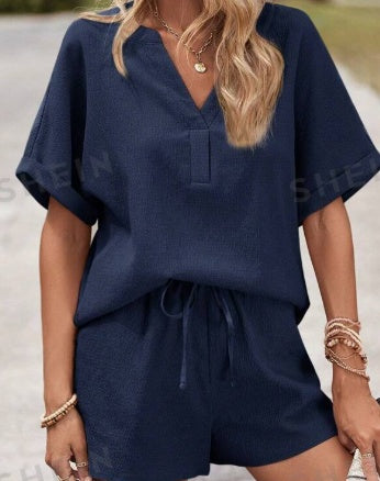 Women's Solid Color Loose Fit Casual 2-Piece Set Conjunto Short Summer Sets