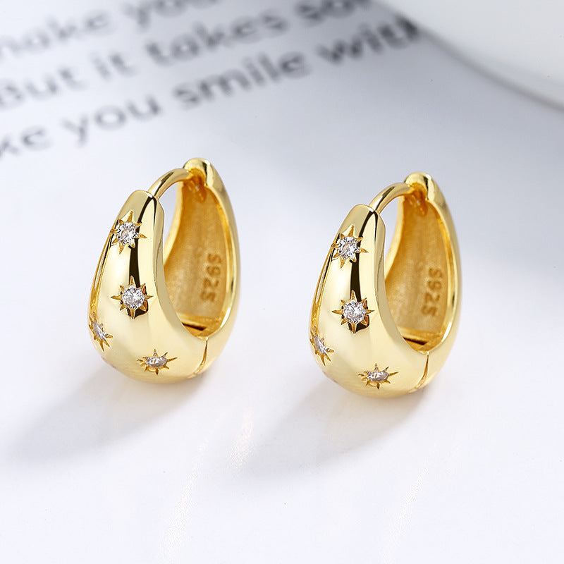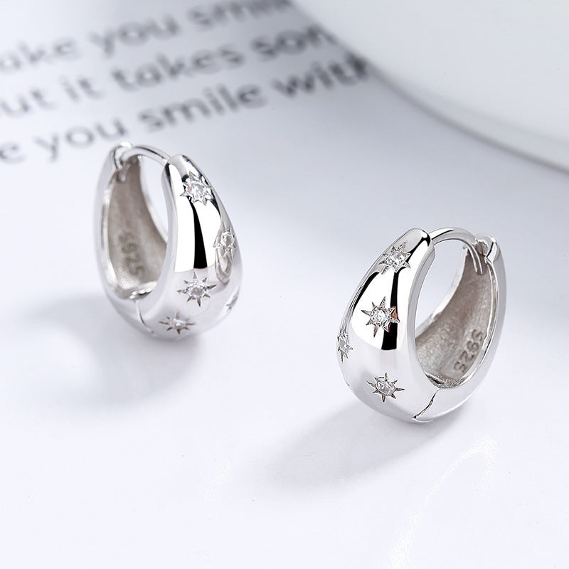 925 Sterling Silver Asterism Earrings Women's French Retro Water Drop Ear Ring