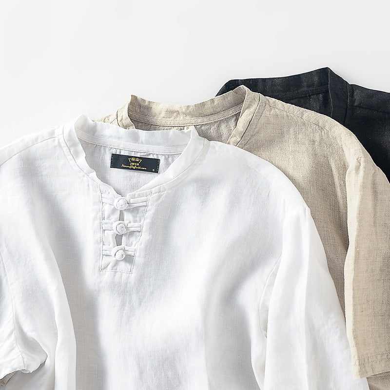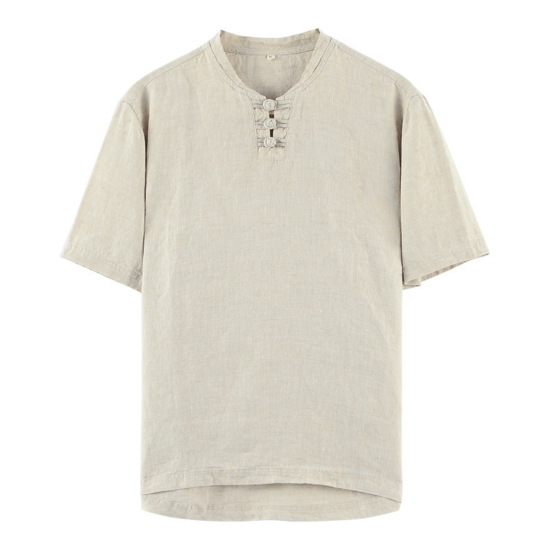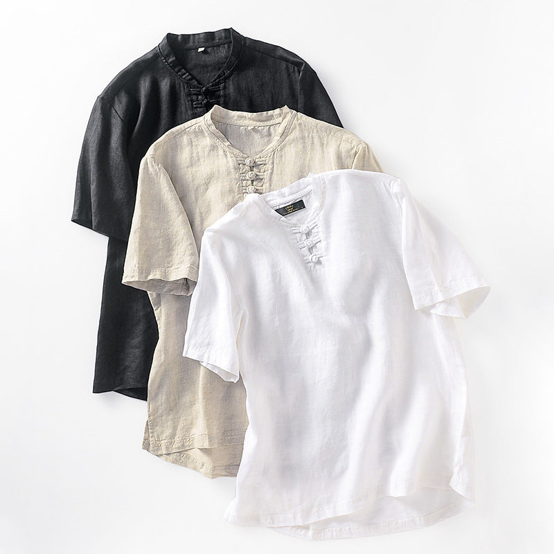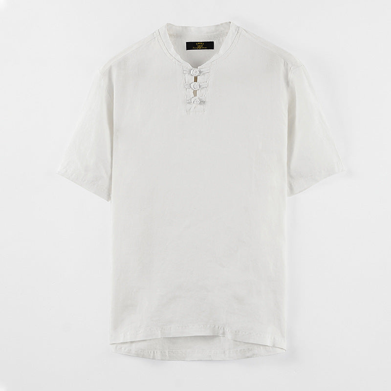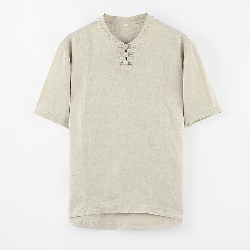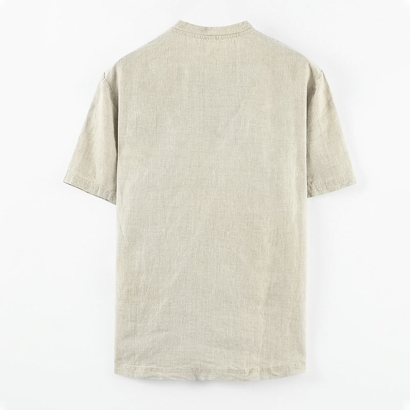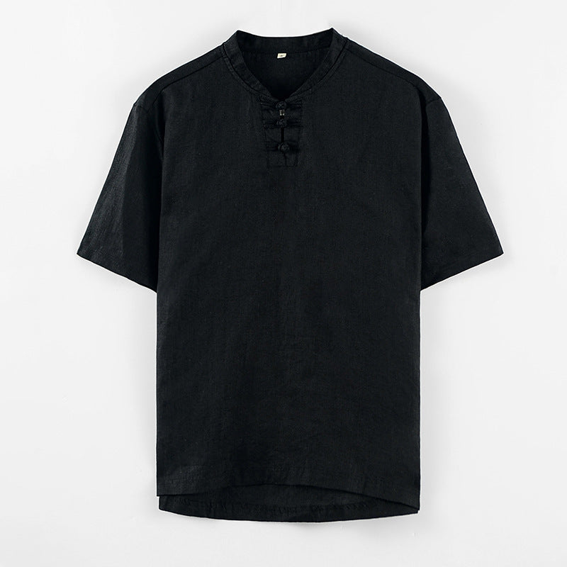Chinese Style Small Stand Collar Pullover Linen Short Sleeve