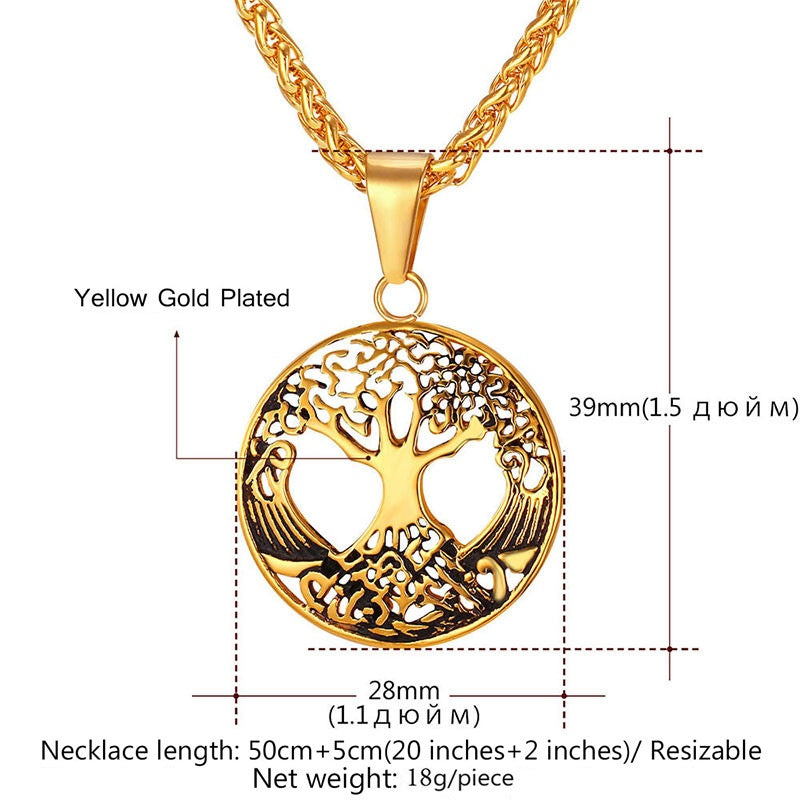 gold plated pendant with 316L stainless steel wheat chain women men statement necklace tree of life jewelry