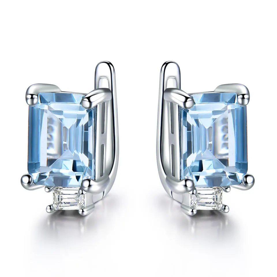 Sterling Silver Square Morganite Gemstone Fashion Korean Simple Ring