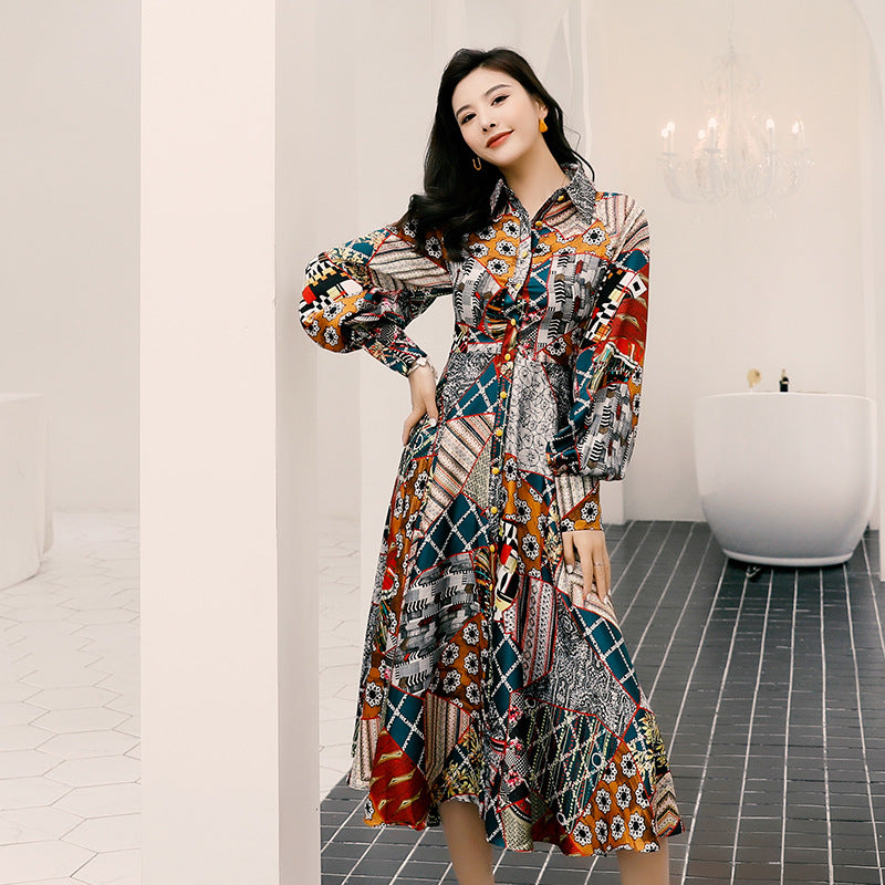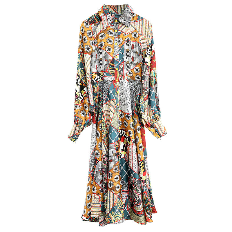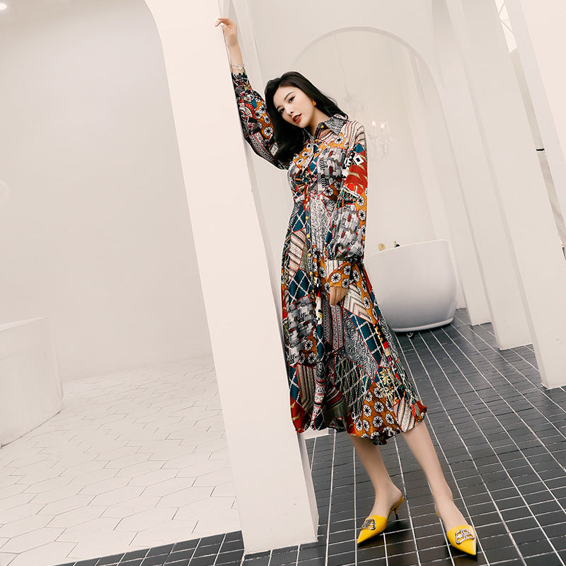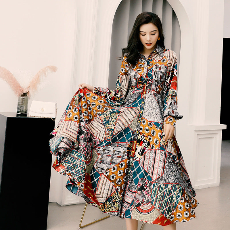 Vacation Style Printed Long Dress With Big Swing